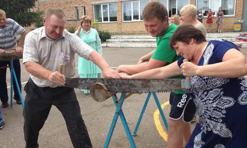 Супруги стреляли из пневматического ружья, сортировали крупы, пилили дрова, забивали гвозди, пришивали пуговицы. Словом, состязались в умении выполнить быстро и умело самые обыденные дела. А под занавес праздника им предложили сварить уху и заварить чай из настоящего самовара.