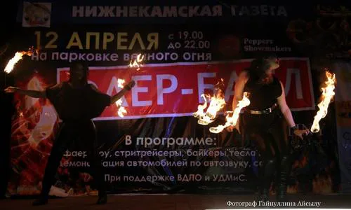 Первого, кстати, огненного состязания в истории Нижнекамска, организаторами которого выступили студия огня «Экстра», «Нижнекамская газета», студия праздника «Перцы», КАИ, студия автозвука «Драйв».