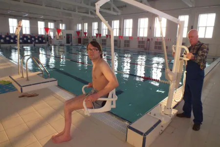Как сообщает пресс-служба мэрии Нижнекамска, в этом учебном учреждении созданы все условия для инвалидов в рамках акции «Доступная среда». В частности, подход к бассейну обеспечивает специальная подъемная конструкция.