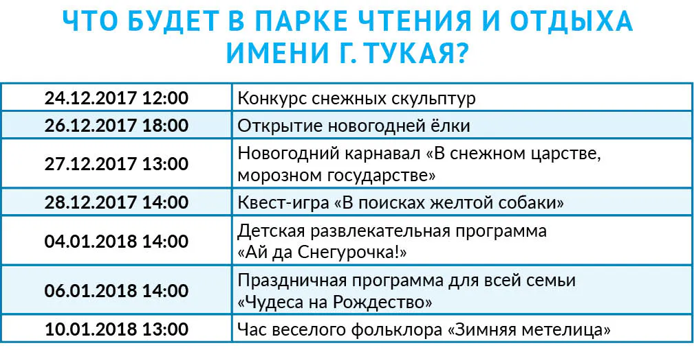 Кроме того, с 25 декабря по 14 января с 12 до 15 часов в конноспортивной школе «Актай» будет организовано катание на лошадях. Интересно, что покататься на лошадях можно будет и в городе – парках «Солнечная поляна» и «СемьЯ» – с 16 до 21 часов.