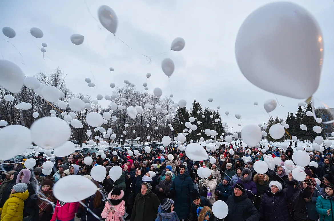 Нижнекамцы запустили в небо сотни белых шаров в память о погибших в Кемерово