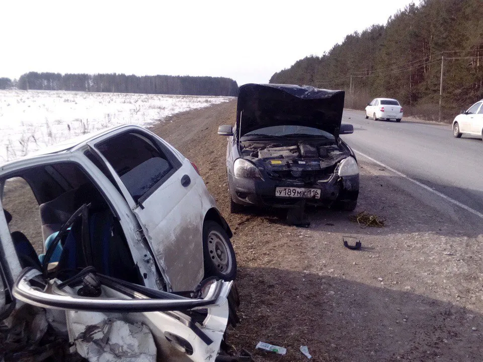 Около 7 часов утра на чистопольской трассе неподалеку от с. Борок Нижнекамского района 61-летний водитель «12-й» выехал на «встречку», причем без цели обгона. На «встречке» он столкнулся с «Daewoo Matiz» под управлением 33-летней автоледи.От удара от автомобиля «Daewoo Matiz» оторвалось переднее левое колесо, которое влетело в попутный транспорт «Лада Приора» под управлением 33-летнего водителя. Сильнее всего пострадал в ДТП водитель «12-й», у него открытая черепно-мозговая травма, открытый перелом левого б
