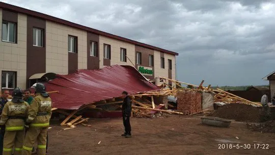 Вчера на Нижнекамский район обрушился ураган. МЧС сообщало, что местами порывы ветра достигали 25 метров в секунду. В результате оказались оборваны линии электропередач, повреждено несколько автомобилей, стоявших на Тукая, Кайманова и в других районах города. Повалены деревья в городе и районе.Аварийные службы приступили к ликвидации последствий стихии.Жертвой урагана стала жительница Муслюмово. 35-летняя женщина работала продавцом в магазине, крышу которого повредило во время урагана. Она вышла посмотреть,