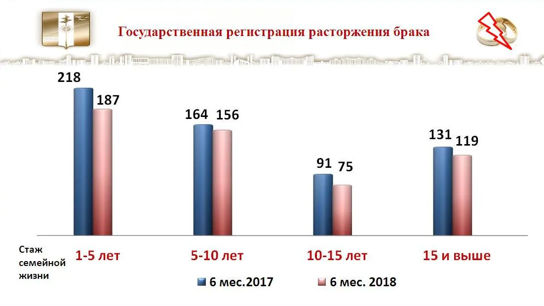 Начальник Управления ЗАГСа Б. Махотина отметила, что количество расторжения браков снизилось на 11% в сравнении с аналогичным периодом прошлого года.