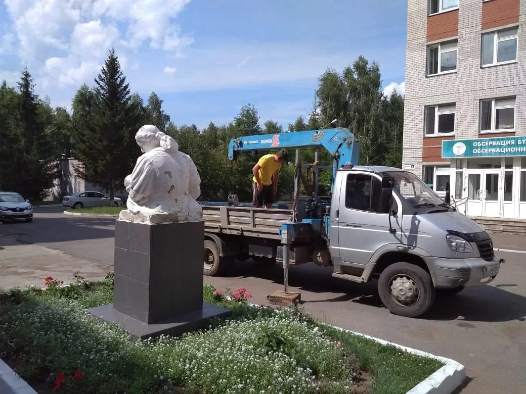 На днях скульптуру матери и ребёнка, которая стояла у нижнекамского роддома, демонтировали. Нашлись неравнодушные спонсоры, взявшие на себя финансовые расходы по транспортировке. Скульптуру погрузили в транспортное средство и перевезли в ангар. В ближайшее время её отправят в Москву: там проведут 3D сканирование и воссоздадут точную копию, которая будет сделана из современных атмосфероустойчивых материалов.