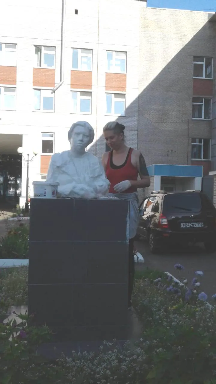 Пока памятник матери и ребенку, который стоял рядом с роддомом, находится в Москве, где специалисты займутся воссозданием его точной копии, работники перинатального центра вносят свою лепту в благоустройство территории вокруг роддома. Буквально на днях на месте привычной скульптуры возникла почти такая же, но только сделанная из гипса. Ее автор – санитарка отделения новорожденных Ксения Казачкова. Маме двоих детей пришла идея сделать из гипсовых бинтов по принципу папье-маше слепок женщины с младенцем. За н