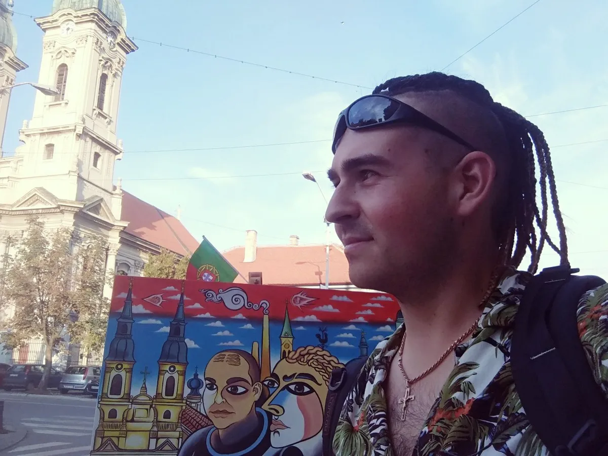 Для меня это стало большой честью, так как обычно подобных приглашений удостаиваются только состоявшиеся художники со всего мира. В коллекции Любиша несколько тысяч работ разных мастеров со всего мира. Обычно я представляю Португалию, так как я являюсь гражданином этой страны. Однако в этот раз решил представить Татарстан – регион России, где живу последние шесть лет. Так, готовясь к поездке, я купил большой татарский флаг и приехал с ним в Сербию. Там я находился 12 дней. Первые два дня я изучал город, а после взялся за работу – написал на холсте о своих впечатлениях, вызванных от увиденного в Панчеве. Только представьте – городу 800 лет, а население – около 80 тысяч. Он в разы меньше Нижнекамска.
