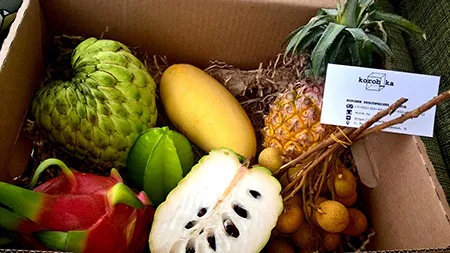 В последнее время набирает популярность так называемая «фруктовая коробка», которую на различных сайтах предлагают в качестве оригинального подарка любимым. Стоит заметить, что обойдется такая радость недешево – от 2 до 8 т.р. Продавцы утверждают, что экзотические фрукты в коробках доставляются дважды в неделю и поэтому всегда очень свежие. К примеру, как выяснил корреспондент nk-online, «коробочка», включающая 2 манго, 2 гуавы, мангостины, рамбутаны, маракуйю, фрукт дракона, молодой кокос, папайю, сахарное яблоко, гроздь лонгана и ананас с Пхукета предлагается на одном из сайтов по цене 7650 рублей.