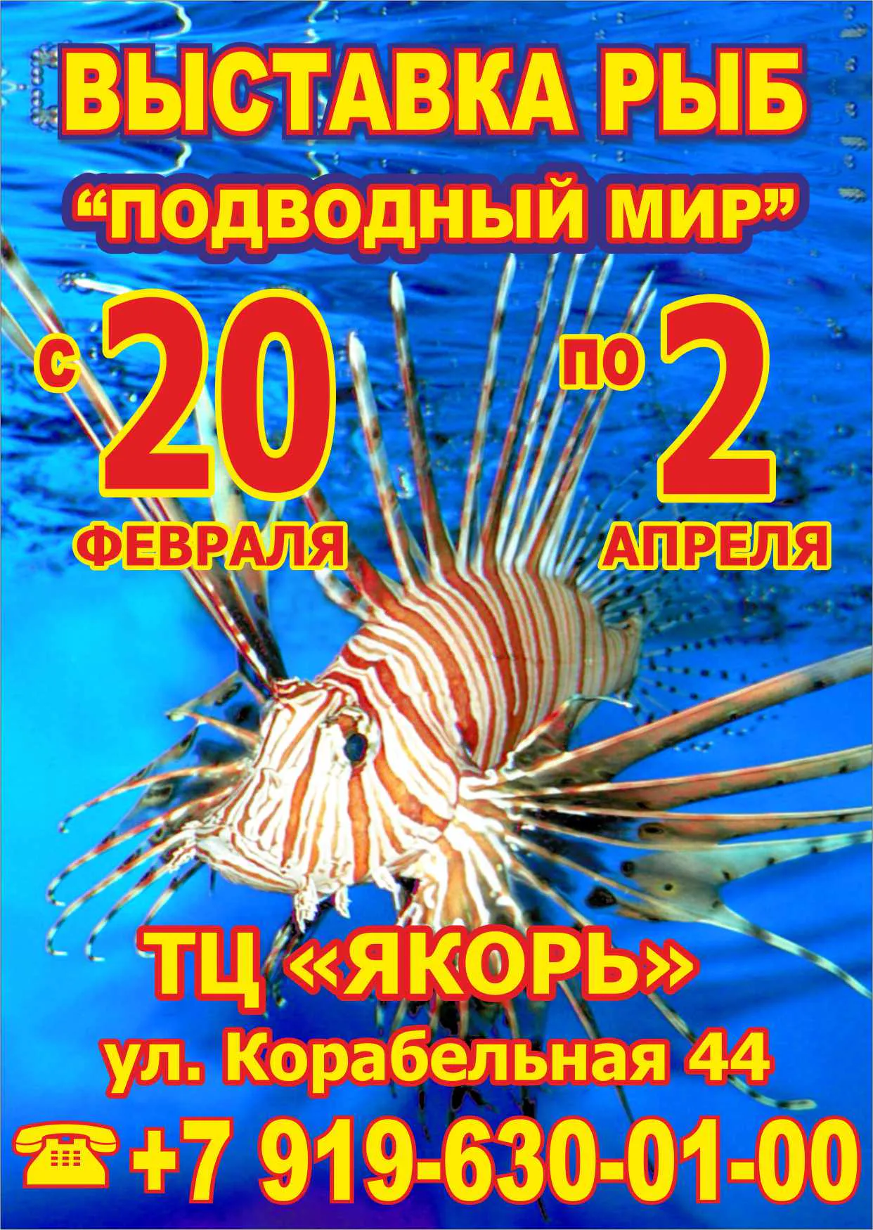 Торговый центр «Якорь» этой весной станет средоточием экзотики - 20 ФЕВРАЛЯ тут откроется выставка рыбок со всех уголков мира.Все мы любим путешествовать… Кто-то в восторге от Средиземного моря, кто-то – от Красного. Кому-то по душе берега Америки, Японии или Австралии. Побывать везде, к сожалению, невозможно, но посетив выставку рыб «Подводный мир» вы увидите обитателей морских глубин со всей планеты, множество разновидностей рыб и самую настоящую АКУЛУ.И в самом деле, если внимательно вглядеться в мир по