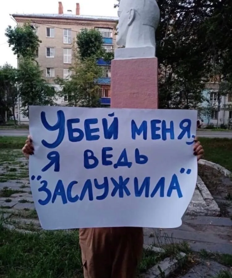 Феминистка из Татарстана настолько возмутилась поступками некоторых мужчин, что решила выйти на улицу и устроить акцию. Она выходила в безлюдные места и фотографировалась, закрыв свое лицо плакатами. Мужчины вызывают у нее негатив и ассоциируются с неадекватным поведением. В пабликах много отрицательных комментариев в ее сторону, пользователи даже называют ее радикальной феминисткой. Некоторые видят в этом пассивную агрессию.
