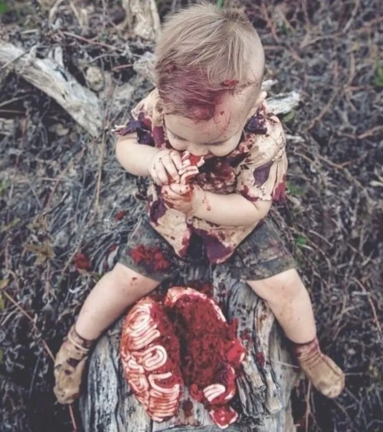 Молодая мамочка похвасталась фотосессией, где запечатлён ее ребёнок, который поедает весьма специфичный торт