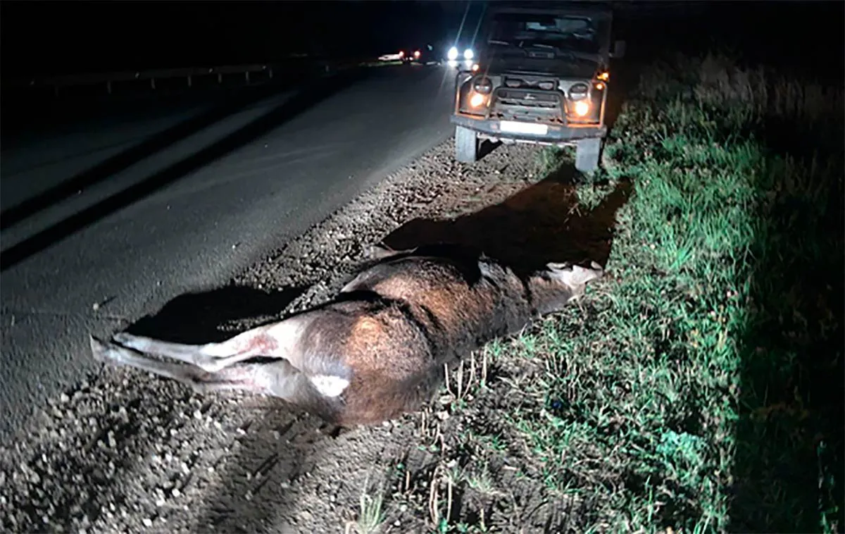 Лось погиб: в Нижнекамске иномарка сбила дикое животное