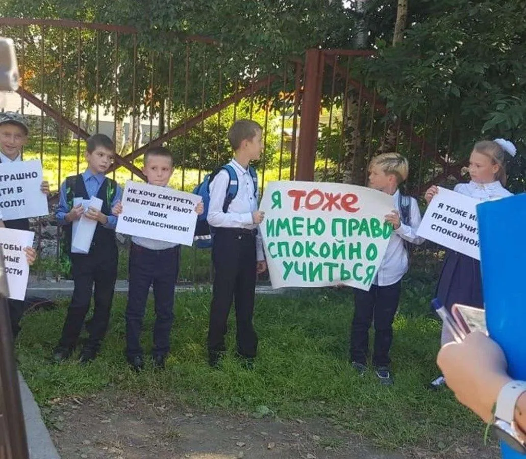 Ученика третьего класса, который бил других детей, перевели на заочное обучение после пикета одноклассников и их родителей. Дети вышли на настоящий митинг, держа в руках плакаты с надписями "Мне страшно ходить в школу", "Не хочу смотреть, как душат и бьют моих одноклассников!" и "Я тоже имею право учиться спокойно". Акцию посетили вице-мэр Елена Фёдорова и директор регионального Департамента образования Светлана Захарова. По словам мамы одного из учеников, власти пытались сделать пикет не столь публичным