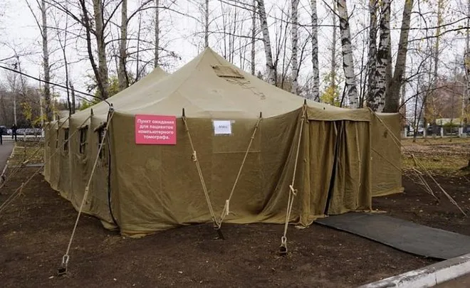 В Нижнекамске возле многопрофильной больницы установили специальную палатку для того, чтобы пациентам было комфортнее ждать свой очереди на обследование на компьютерном томографе. В палатке, которая начала свою работу вчера вечером, создали все условия для пациентов — помещение обогревается, электричество проведено, установлены чайники, сиденья. Здесь будет круглосуточно дежурить фельдшер, чтобы организовывать очередь и направлять пациентов. Все находящиеся там будут обеспечиваться масками, перчатками, сред