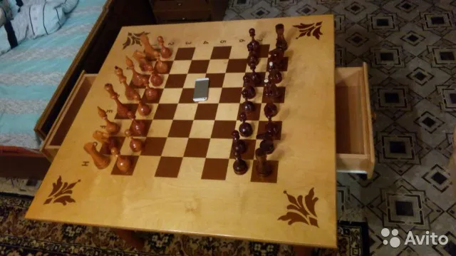 Если у вас дома совершенно случайно обнаружится шахматный стол ручной работы, можете попробовать его продать. Во всяком случае, подобное объявление есть, такой столик оценивается в 20 т.р.