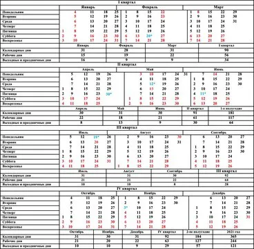Когда будем работать и отдыхать в следующем году
