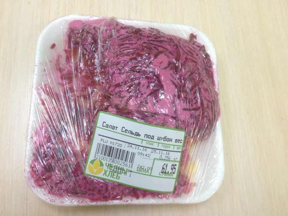 - Сегодня купила в магазине «Челны хлеб» салат «сельдь под шубой», - рассказала женщина. - Он оказался испорченным. Что делать в таком случае? Такое происходит уже не первый раз! Пришла в магазин, вернула продукт, там даже не извинились. Деньги отдали и все. На салате оливье видела обрывки вчерашних ценников рядом с новыми, причем не раз была свидетелем того, как продавцы эти ценники переклеивают.