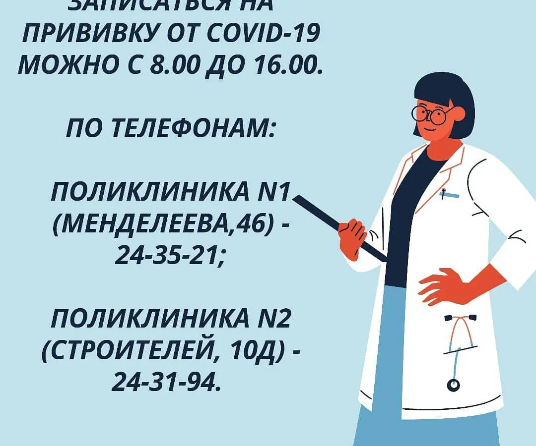Теперь записаться на прививку можно с 8.00 до 16.00 в поликлиниках по месту прикрепления полиса ОМС. В ГАУЗ «НЦРМБ» по телефонам: