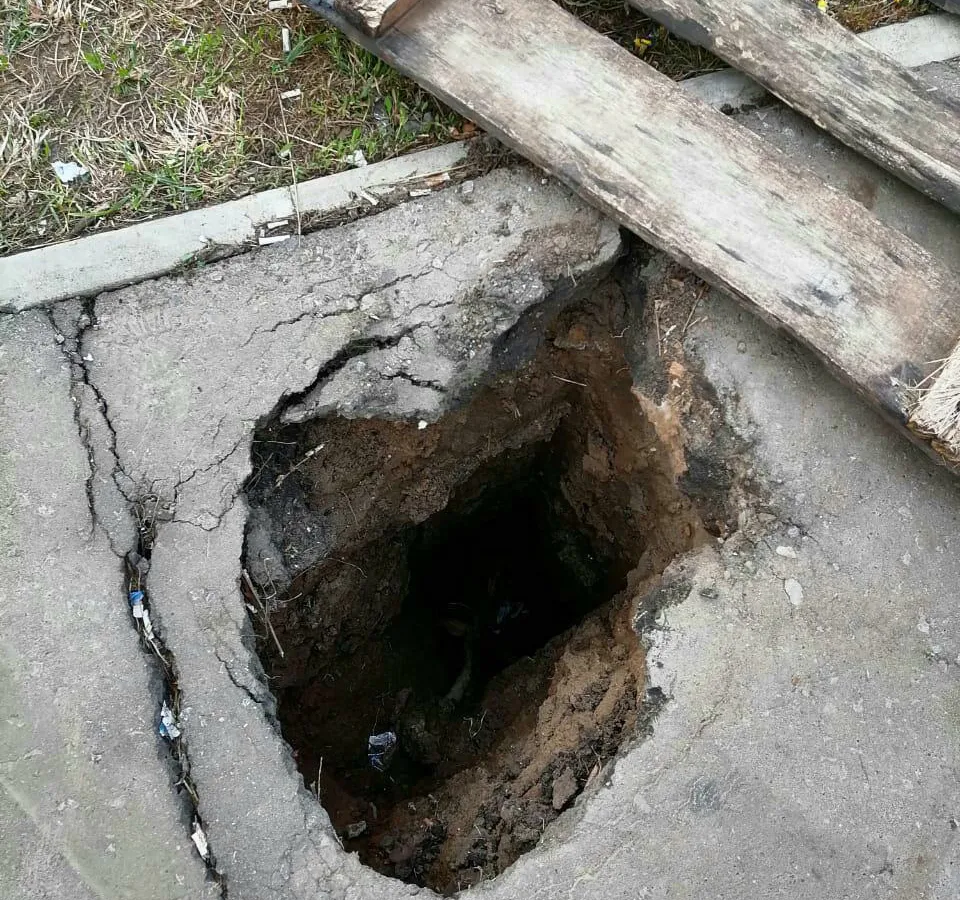 Огромная яма образовалась на тротуаре. С такой проблемой горожане обратились в группу «Народный контроль Нижнекамска». «Яма расположена на улице Студенческая между домами 32-Б и 32. До майских праздников, там ленту вешали, что-то делали, теперь бросили», - написали нижнекамцы.По словам жителей, дети оттуда в школу ходят. Боязно за них.