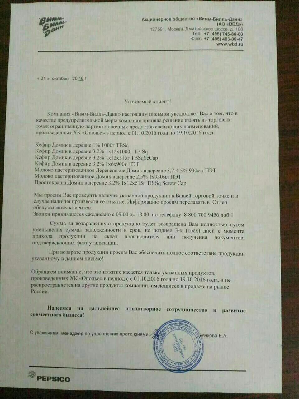 «В молочной продукции Вимм-Биль-Данн нашли ящура, произведенная начиная с 11 октября, вся продукция отзывается с продажи и уничтожается. Бренды компании: Домик в деревне, Агуша, Иммунеле, сыр Ламбер, Веселый молочник, Чудо, Кубанская буренка. Не покупайте!!! Все выкиньте! Совещание было с управлением Роспотребнадзора.