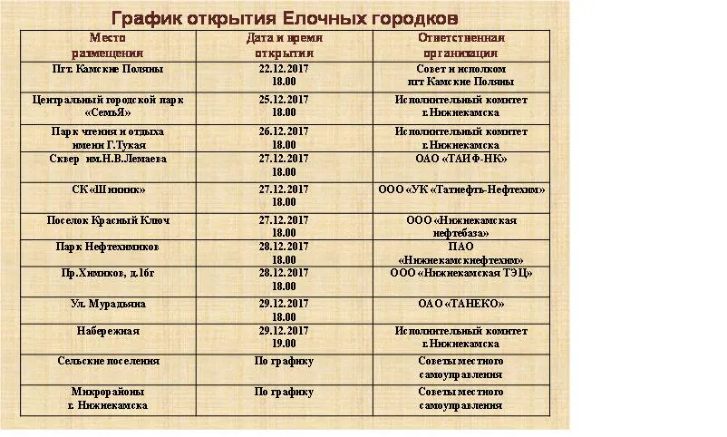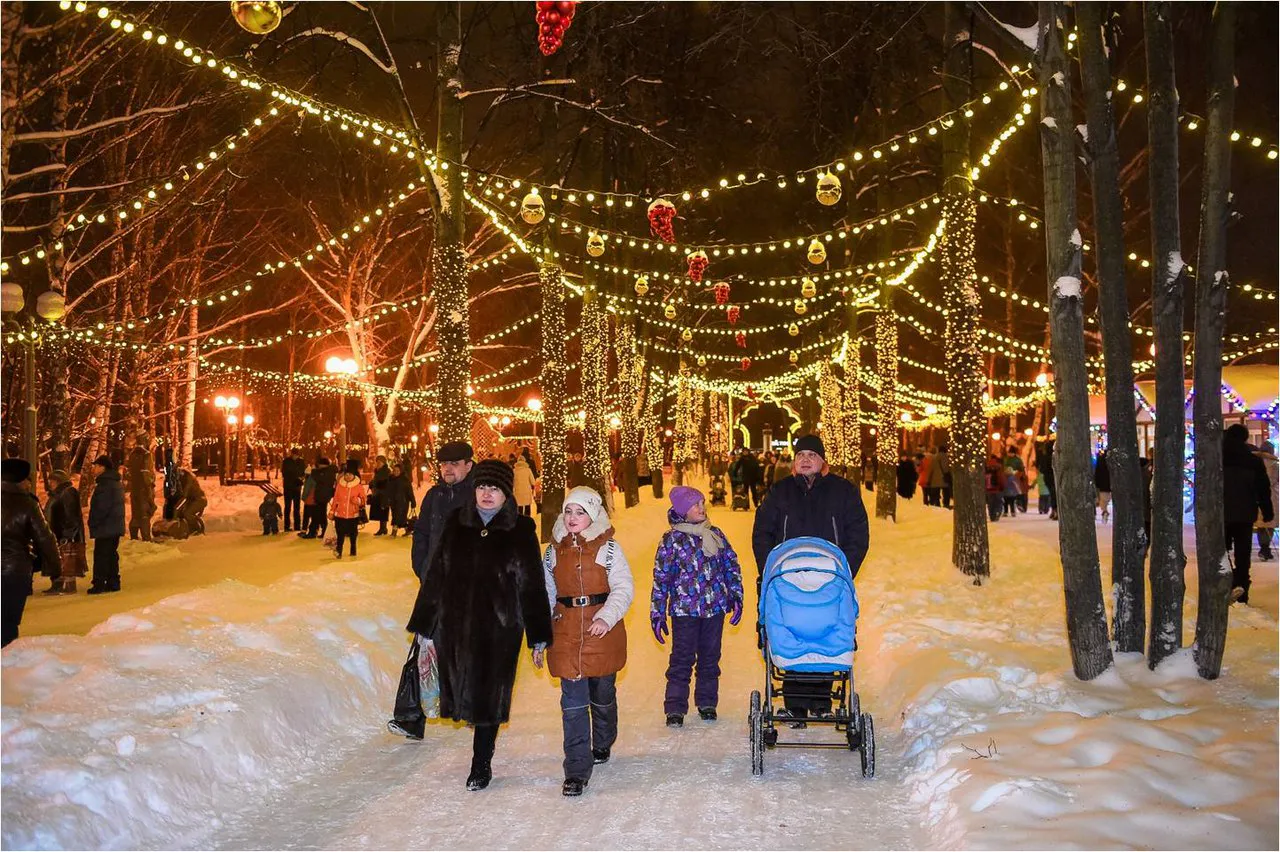 С 25 по 29 декабря в городе откроются девять ёлочных городков. Об этом на совещании руководителей рассказал руководитель Исполкома города Денис Баландин. «7 чудес света» и 196-метровая «ёлка» Так, например, определена концепция новогоднего оформления центрального городского парка «СемьЯ». Перед входом в парк гостей будут встречать двухметровые Дед Мороз и Снегурочка, а велосипедный мост и каждое здание будут украшены разноцветными гирляндами. Появится здесь яркое «звёздное небо» и ледовый городок в концепц