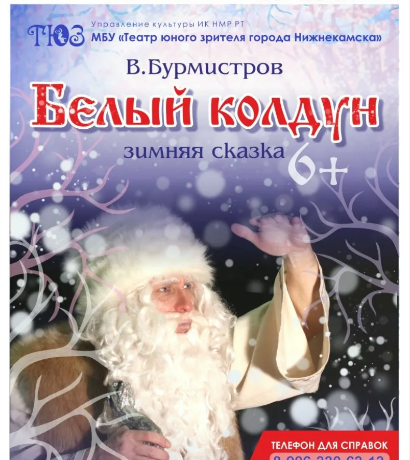 4 января в 15:00 " Белый Колдун" (6+) В. Бурмистров ⠀5 января в 15:00 Премьера спектакля "Новые приключения героев сказки Белый Колдун" (6+) В. Бурмистров ⠀8 января в 15:00 "Сказка о мертвой царевне" (12+) А. С. Пушкин. ⠀ Билеты можно приобрести по адресу: пр. Химиков 33. с ПН. по СБ. с 14:00 до 18:00. В день представления билеты продаются в Доме народного творчества.4 января в 15:00 " Белый Колдун" (6+) В. Бурмистров ⠀5 января в 15:00 Премьера спектакля "Новые приключения героев сказки Белый Колдун" (6+)