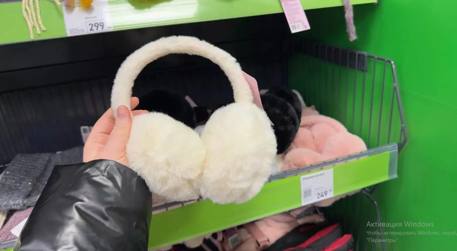 Первое, что бросается в глаза — обилие головных уборов и аксессуаров для ушей. Помимо классических вязаных шапок, здесь представлены стильные меховые наушники. Они выглядят как модный аксессуар, а не как сугубо практичная вещь. Модели из искусственного меха в нейтральных серых, бежевых и молочных тонах легко комбинируются с любой верхней одеждой. Ценник в 199-249 рублей делает эту покупку почти импульсивной.