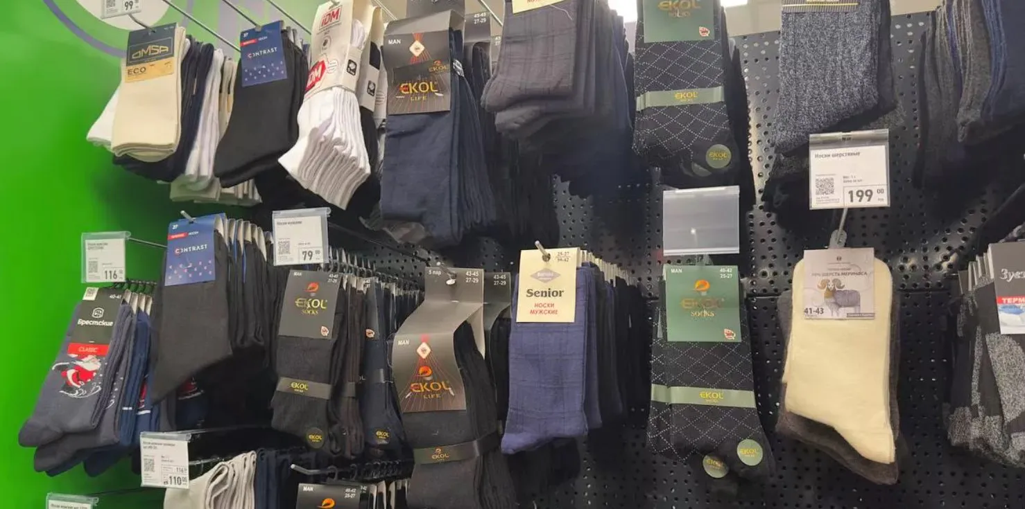 Носки — отдельная история успеха. Полки буквально ломятся от разноцветных, полосатых, с новогодними узорами и классических однотонных моделей. Есть как тонкие хлопковые варианты для дома, так и плотные, высокие носки с добавлением шерсти, специально созданные для холодной погоды. Ценовая политика остается в рамках ожидаемого: от 99 рублей за пару.
