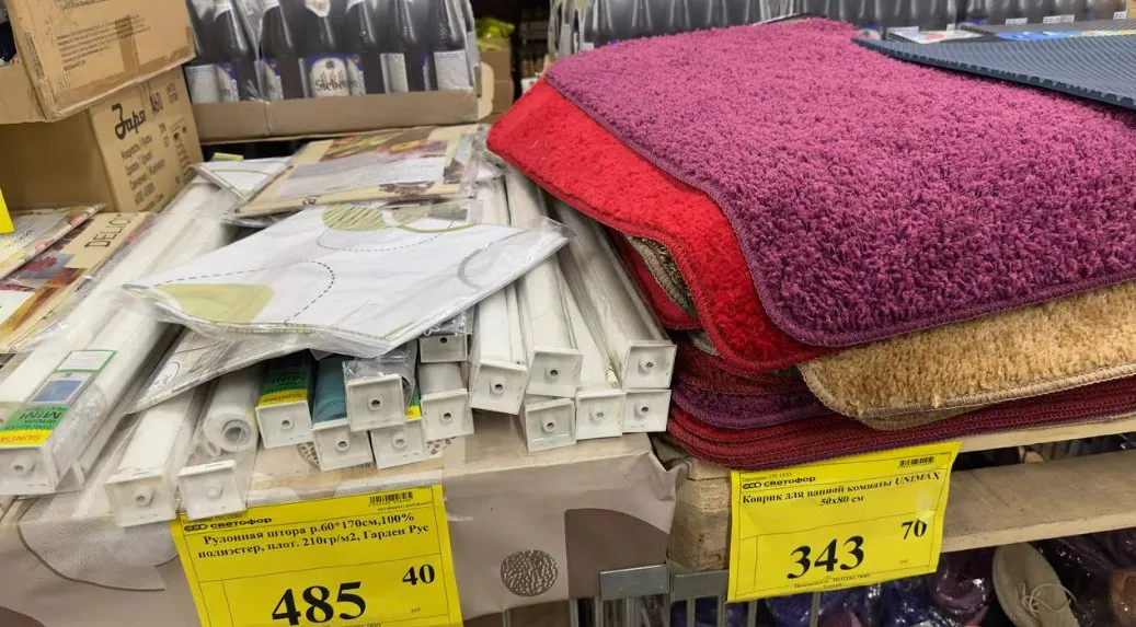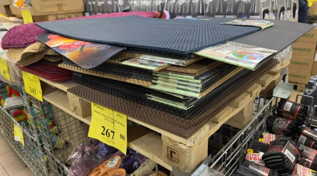 В том же отделе — стопки ковриков для прихожей. У меня такие уже есть: один лежит в общем коридоре, другой — дома у двери. Очень выручают, когда заходишь с улицы, и обувь можно просушить без грязи на полу.