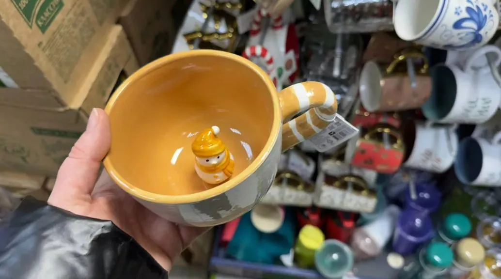 А для любителей горячих напитков найдётся забавная кружка со снеговиком внутри — отличный вариант для утреннего кофе.
