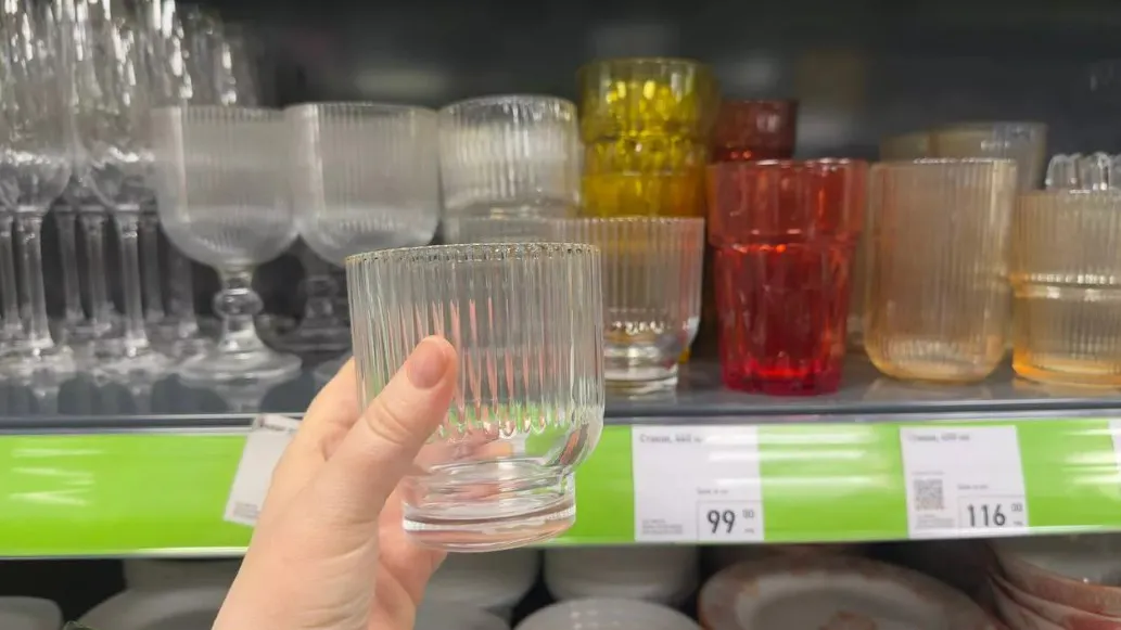 Первыми в глаза бросились обновлённые гранёные стаканы. Они сохранили свою узнаваемую форму, но выглядят теперь аккуратно и современно. Такой вариант легко дополнит как новогоднюю сервировку, так и повседневное использование. Стоимость 99 рублей.