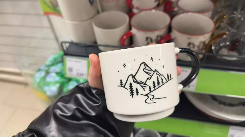 Для ценителей минимализма нашлись изящные кружки с лаконичным рисунком гор. Их сдержанный дизайн идеален для спокойных зимних вечеров.