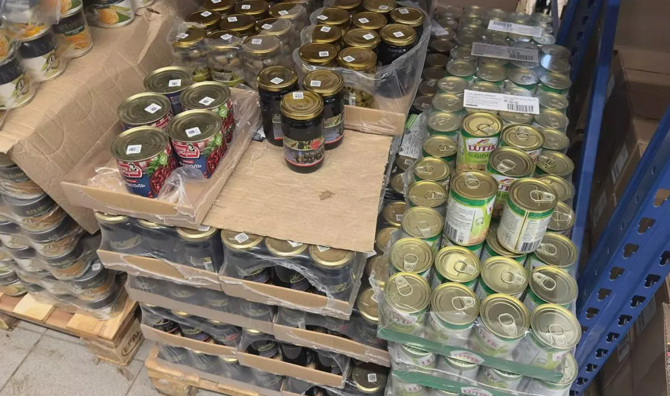 Упакованные продукты с чётко читаемым составом и сроком годности: сыры, консервы (горошек, кукуруза), печенье и шоколад.