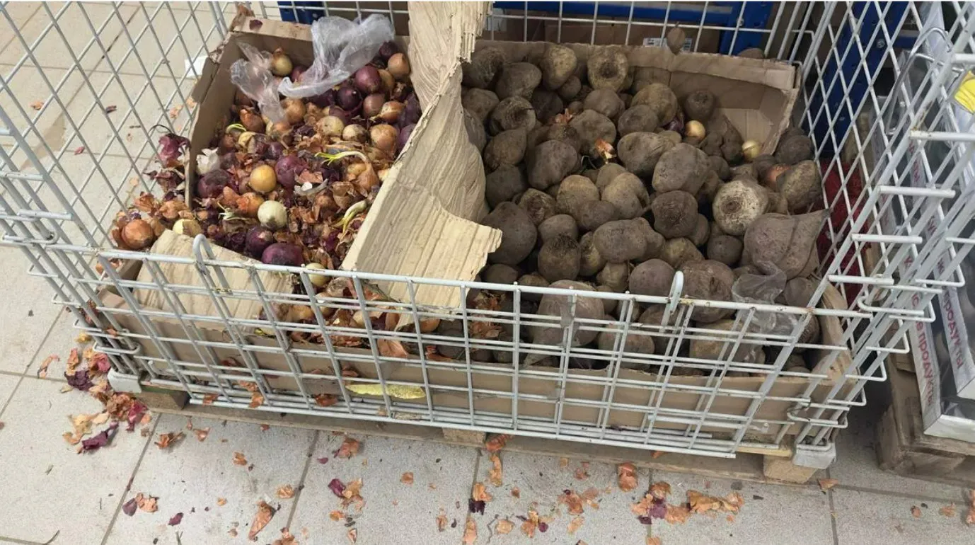 Свежие овощи и фрукты из общих коробок. Их стоит очень внимательно перебирать, так как высока вероятность найти подпорченные экземпляры.