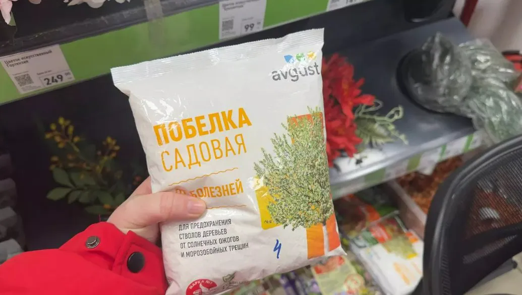Готовая садовая побелка помогает защитить деревья. Она предохраняет кору от вредителей и солнечных ожогов, при этом её не нужно самостоятельно смешивать, что экономит время.