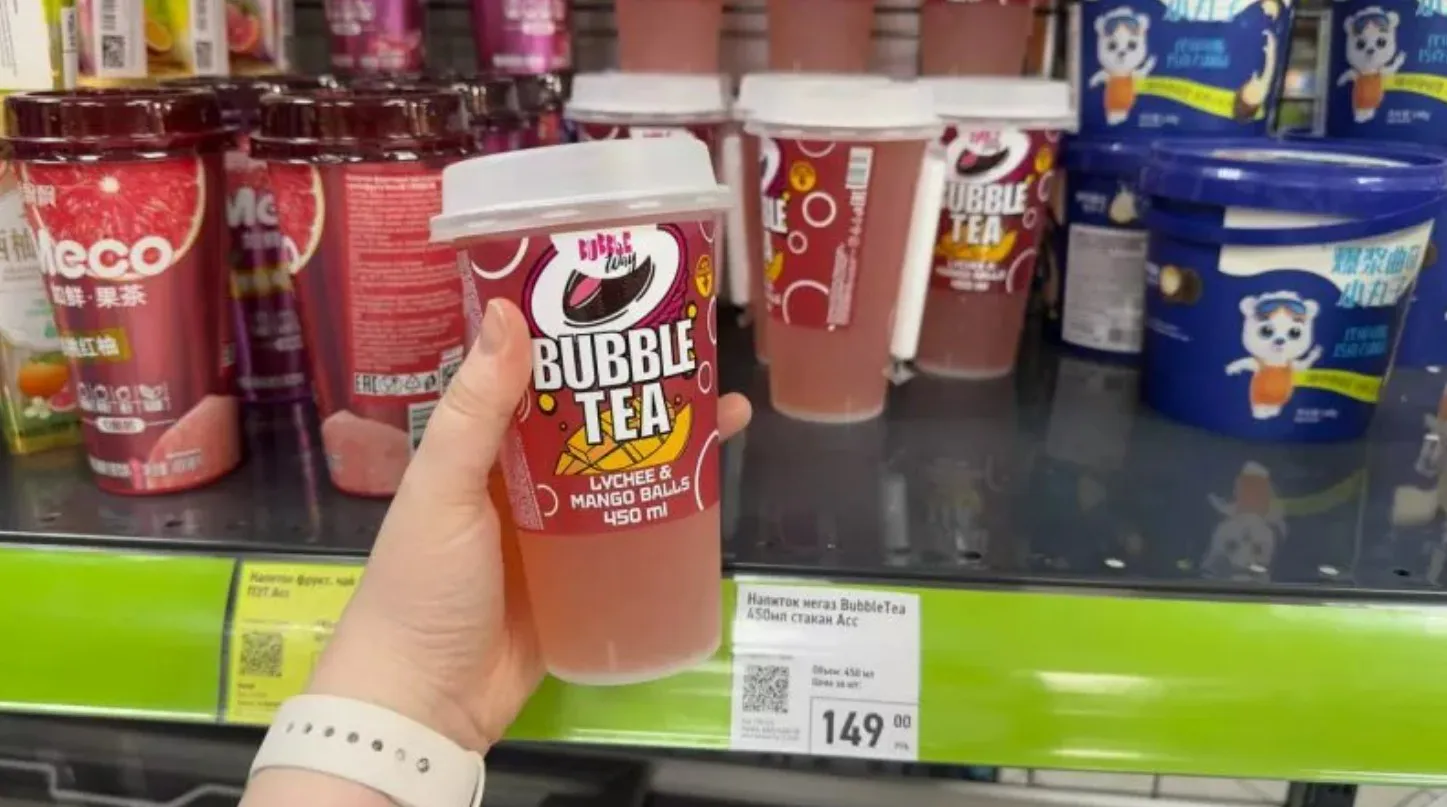 Bubble tea с личи и манго. Напиток выделяется мягким и насыщенным вкусом с выраженной тропической сладостью, что нехарактерно для продуктов сегмента бюджетных цен.