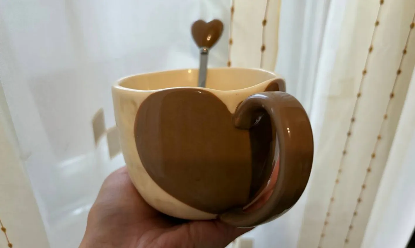 В комплекте 2 кружки — розовая и коричневая, а также 2 милых чайных ложечки с сердечками. Артикул: 315560835