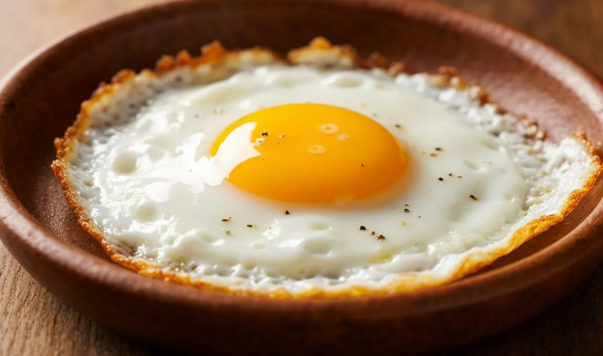Пузырьки на поверхности — это воздух, который не успел выйти из белка при слишком быстром и агрессивном нагреве. Решение простое — не спешить. При спокойной, умеренной жарке белок сворачивается медленно и равномерно, воздух успевает выйти, и поверхность остаётся гладкой и аппетитной.