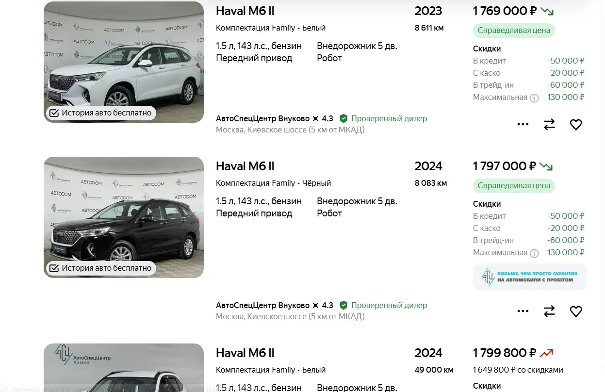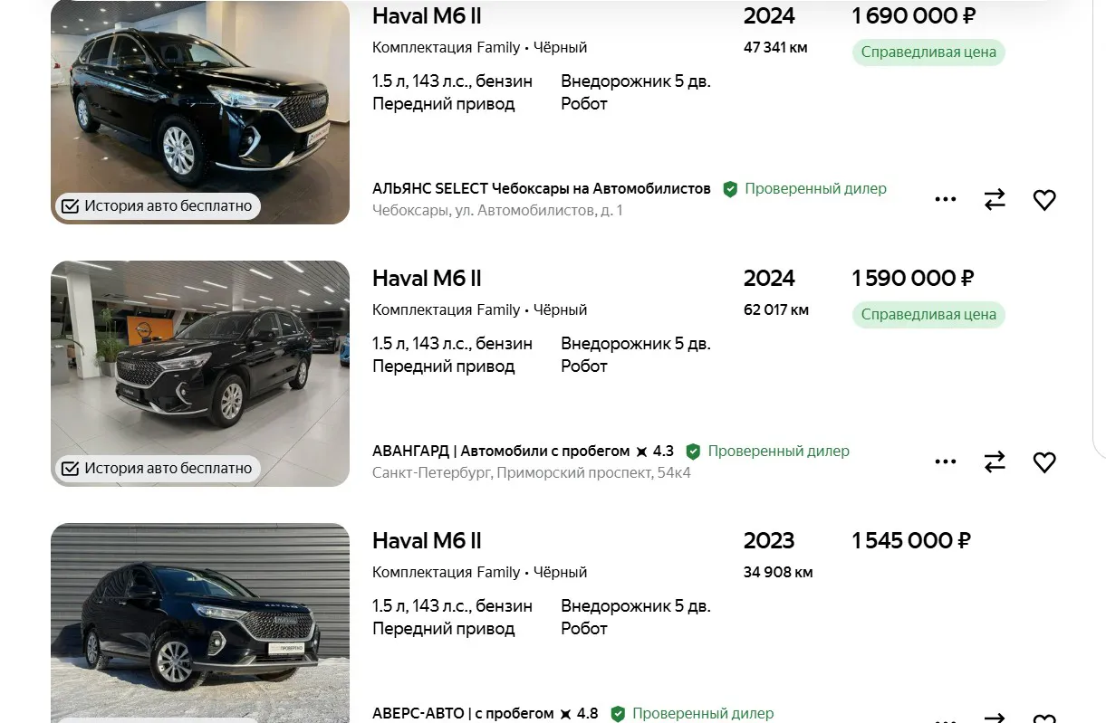 Если есть наличные, то на площадках можно найти варианты гораздо дешевле новых. Главное — не вестись на уговоры про дополнительные страховки и внимательно смотреть на техническое состояние каждого экземпляра.