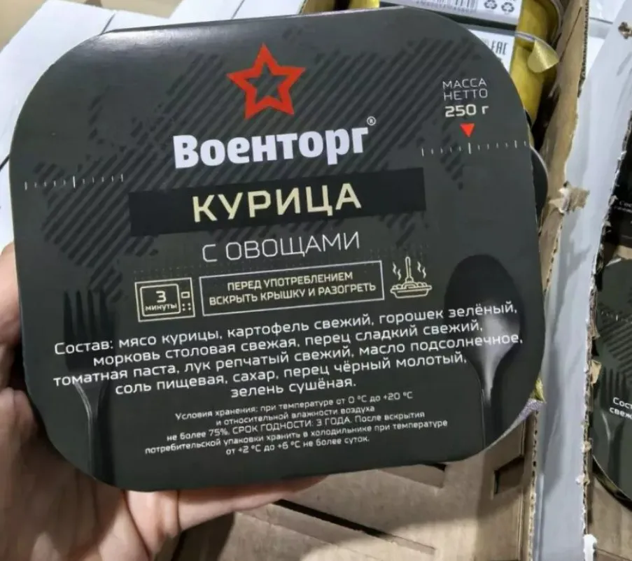Для любителей сытной еды нашлась курица с овощами Военторг. Просто, сытно, без излишеств — подходит для быстрого перекуса.