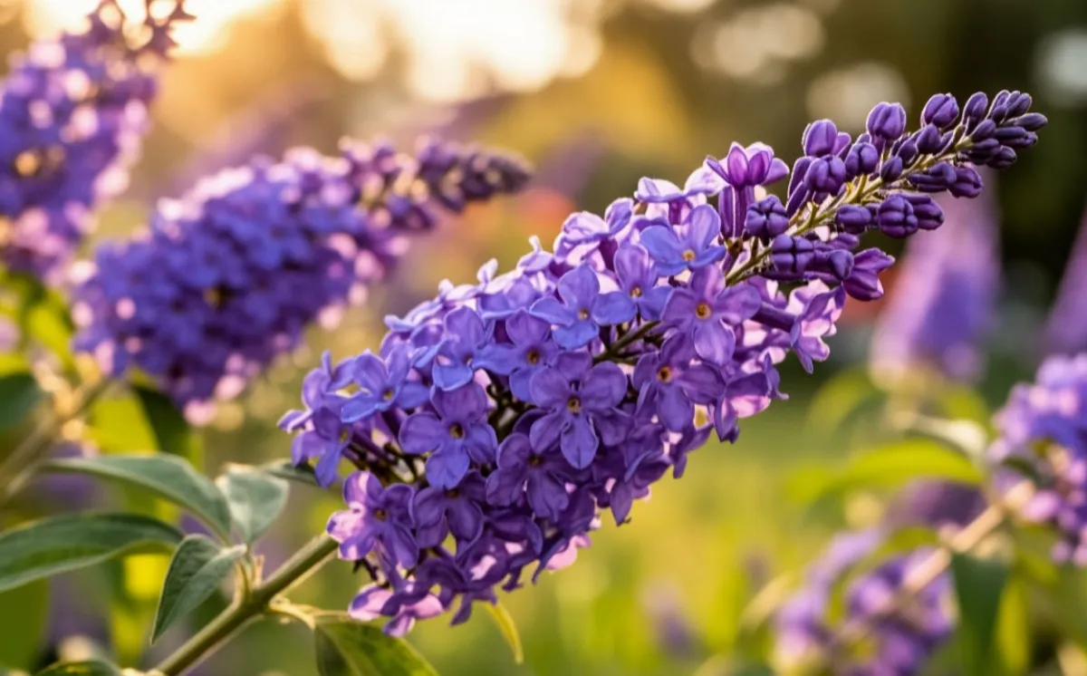 Цветение у него длится с начала лета до октября. Фиолетово-сиреневые кисточки собирают бабочек, а сам куст выглядит аккуратно и не требует сложной обрезки. Главное правило — вовремя убирать увядшие соцветия, чтобы на их месте появлялись новые бутоны. Как и высокая буддлея, этот сорт любит солнце и не выносит, когда у корней застаивается вода.