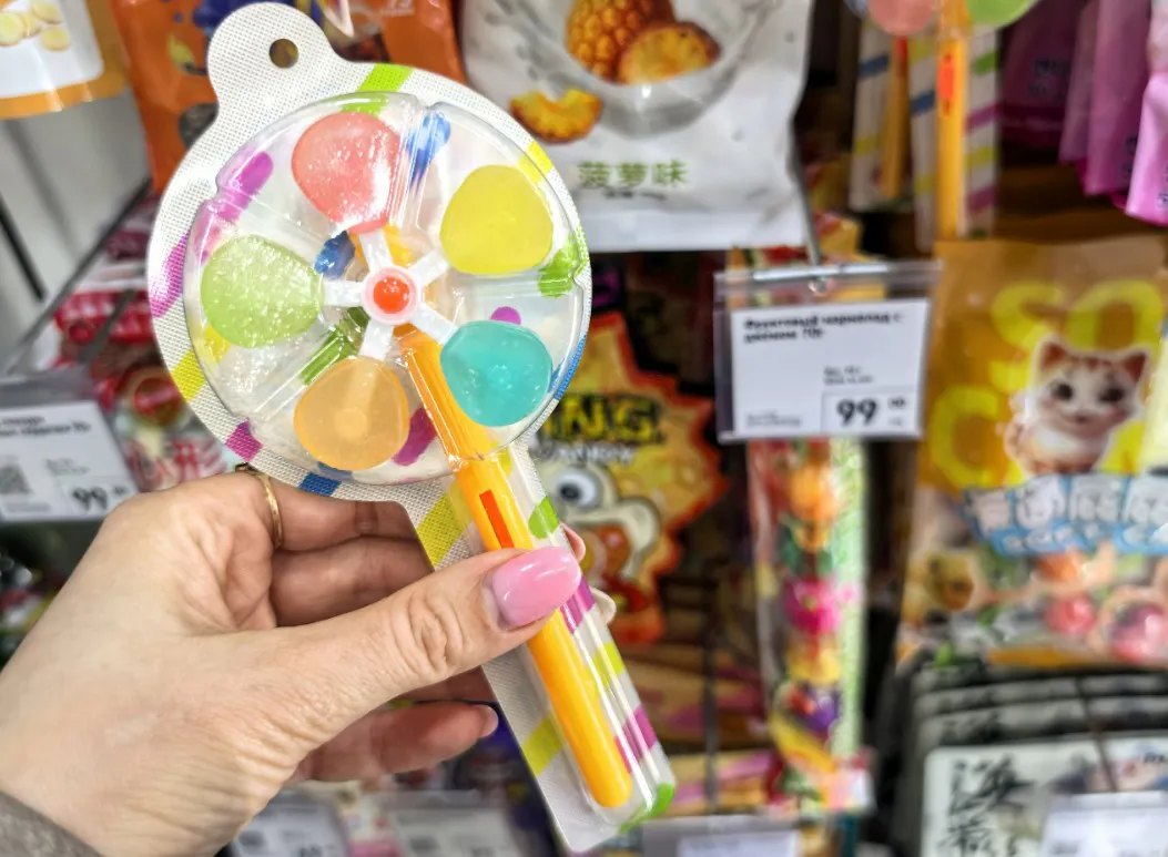 Я уже почти выбрала очаровательный летний домик для своих будущих растений, как вдруг взгляд упал на кассовую зону. И тут началось самое интересное! Среди привычных мелочей взгляд выхватил что-то необычное – фруктовый мармелад в виде мельницы. Это же целая композиция, а не просто сладость!