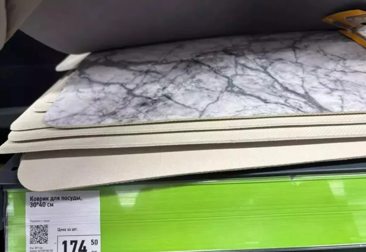 Простая, но полезная вещь. Коврики впитывают влагу с посуды, не нужно вечно вытирать лужи на столешнице. Есть разных цветов и с забавными принтами — даже такая прозаичная вещь может стать украшением.